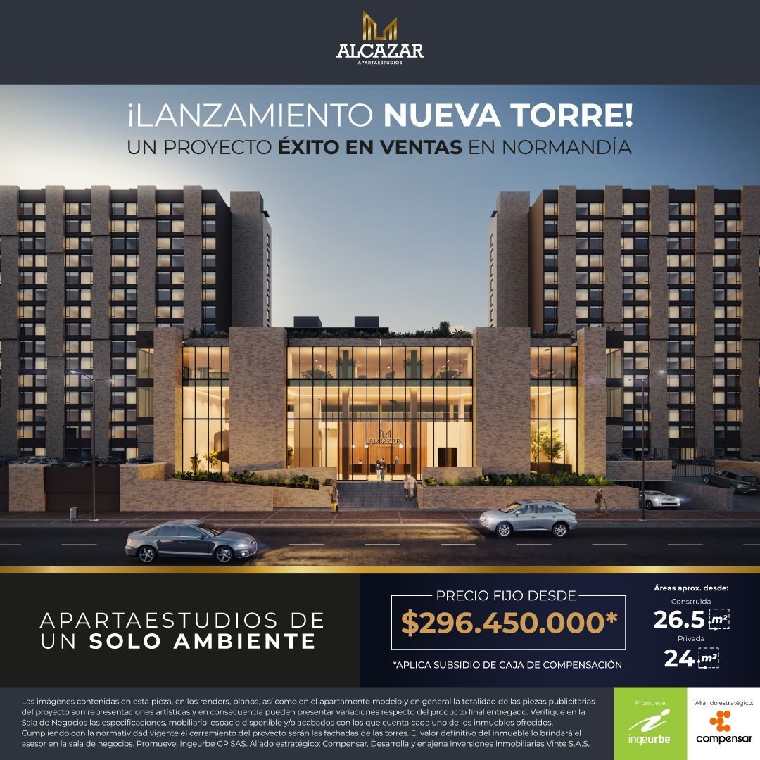Alcázar ofrece apartaestudios VIS desde 26.5 m², con espacios funcionales ideales para vivir o invertir.